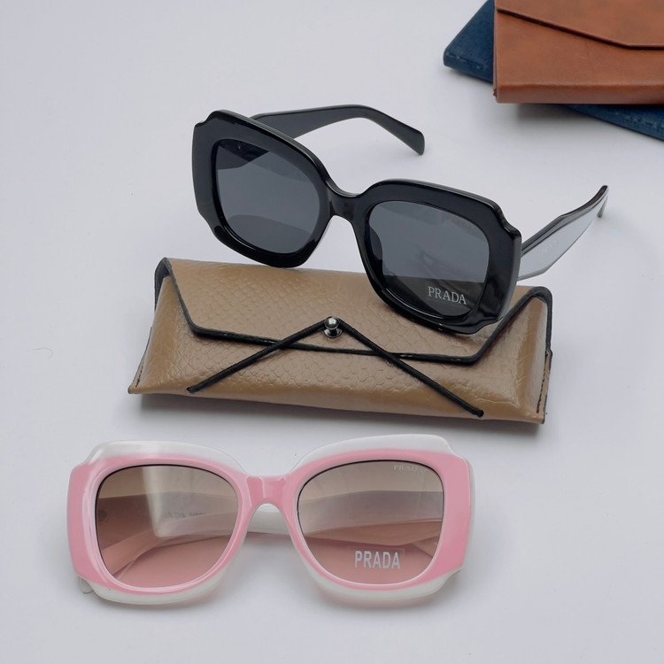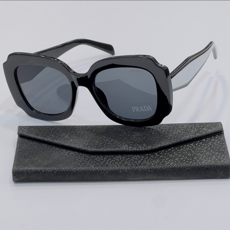 عینک آفتابی برند پرادا با کیفیت عالی و دو تا رنگ جذاب برای خانوم هایی با صورت بزرگ و متوسط بهترین گزینه میباشد